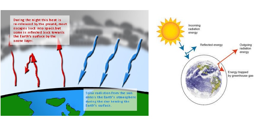 These Green house gases which are liberated in the atmosphere form a blank over the earth surface thus trapping and preventing the heat from escaping the earth’s surface, thus resulting in increasing the temperature of the Earth, a process termed as Global Warming.